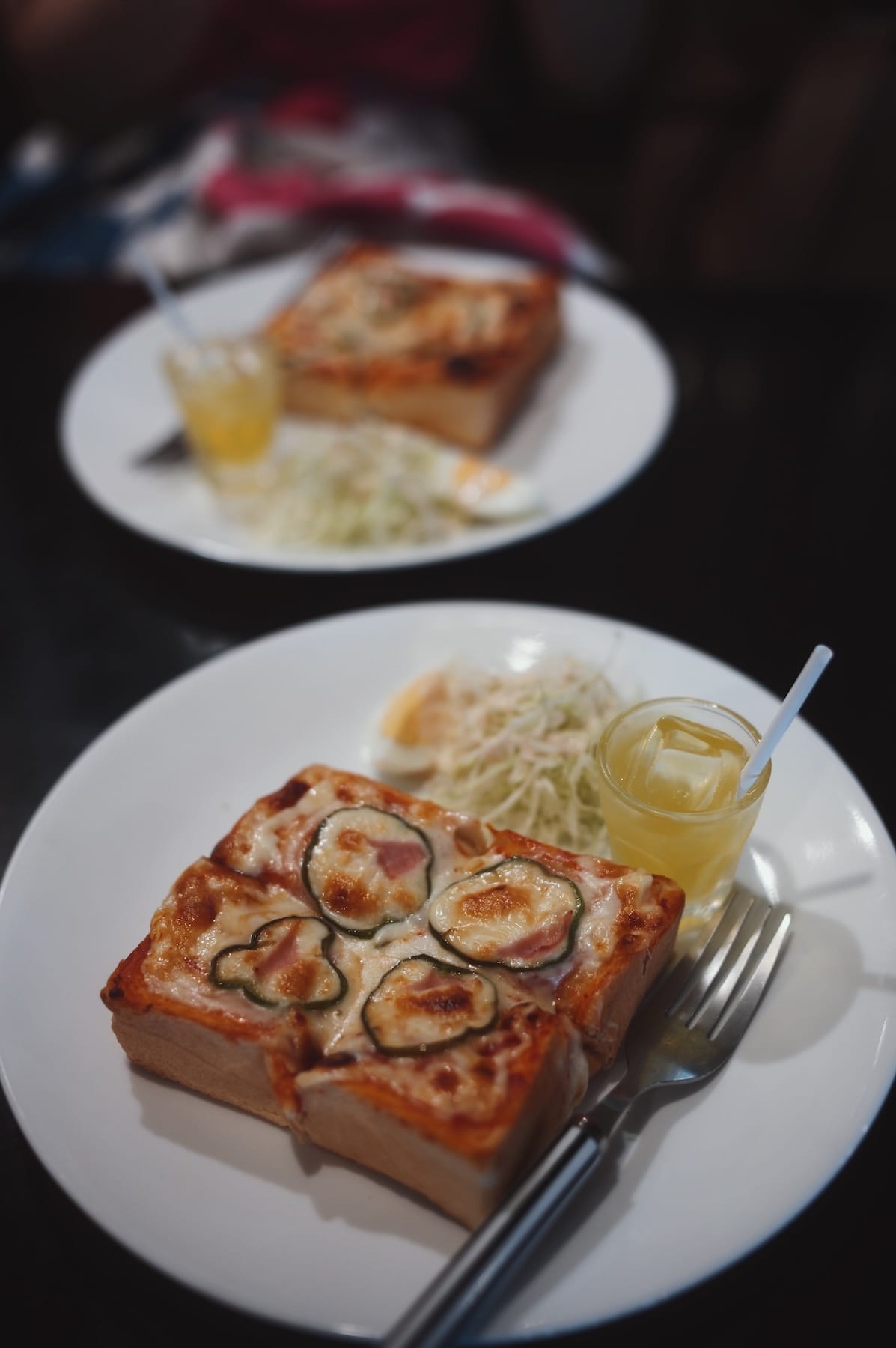 - At Tea House Riebe we had the classic morning set with pizza toast.